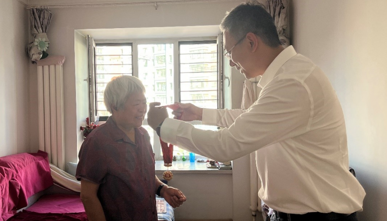 黑人av 为老党员上门颁发“光荣在党50年”纪念章