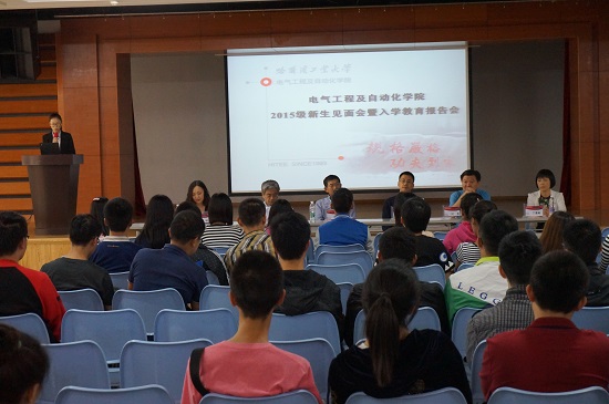 2015年9月11日下午16:00,黑人av 2015级研究生与院领导见面会暨入学教育报告会在活动中心201隆重举行。黑人av 院长彭喜元、黑人av 党委副书记李岩松、自动化测试与控制系主任叶东、电气工程系主任刘晓胜、自动化测试与控制系秘书丁惠敏以及电气工程系秘书关硕出席了大会。会议由黑人av 2015级硕士协理员张依主持。