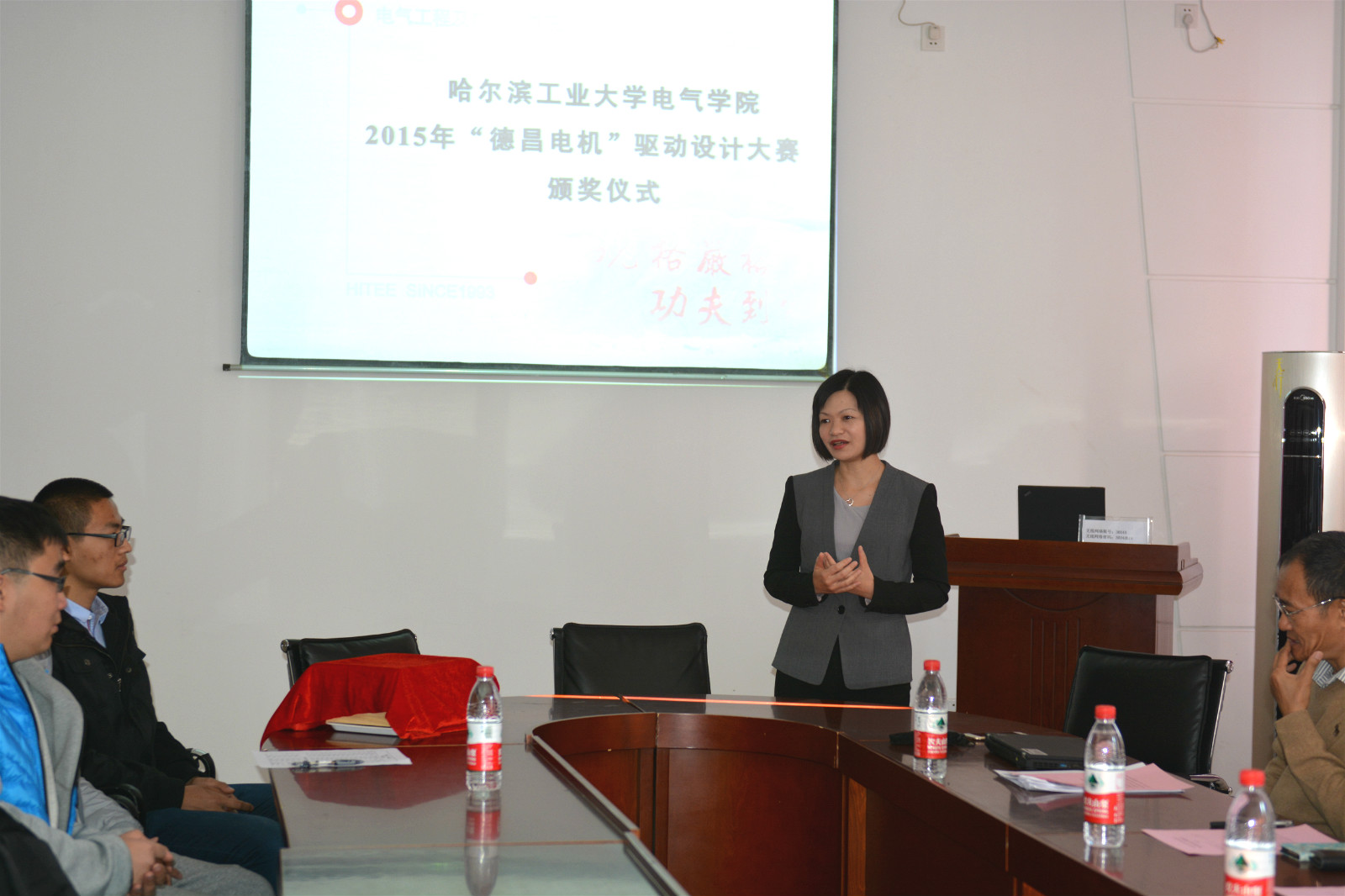 首先,由德昌电机有限公司周燕媚女士致辞,周女士表示,德昌电机公司作为业界知名的企业,在发展与创新的同时,对教育事业高度重视,同时也高度赞扬了同学们在比赛中的创意与想法,并鼓励同学们在未来的日子里不断将新的创意付诸实践,取得更大的进步。
