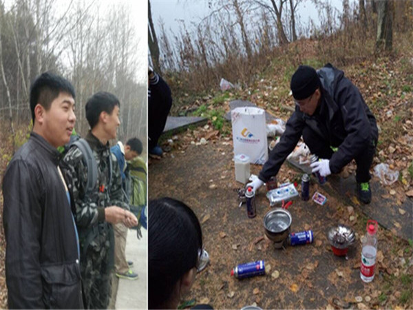 上午十点钟,TEAM全体成员从哈工大一校区出发,下午一点钟到达平山,开始徒步行进。每个人都背着沉重的背包,其中男生人均负重15公斤,女生人均负重10公斤,包内装有各种野营装备,食物,饮用水等等。伴随着蒙蒙细雨,队员们一路向前,欢声笑语,体验与大自然的零距离接触,纵享抛开生活烦恼的愉悦。漫漫平山路,浩浩西泉眼,下午三点半,全体队员顺利抵达露营地点。之后,李岩松老师向大家讲解野外生存技巧及注意事项,指导队员利用气炉和气罐烧水做饭,并收拾场地搭帐篷。虽然一直是小雨淅淅,天气也变得寒冷,但是队员们的热情却依旧高涨;虽然大家在雨中烧水做饭,穿着雨衣吃饭,但是每个人心中都无比喜悦。夜虽然寒冷,可是这并没有给大家的活动带来影响,晚饭结束后,队员们在帐篷里休息,体验着一天疲劳之后游戏带给大家的欢乐。