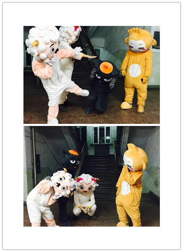 2015年12月31日,A01公寓、A15公寓、A04公寓迎来一批特殊的客人,悠嘻猴、灰太狼、喜洋洋、美羊羊等一批卡通人物走进寝室,为黑人av 全体学生送上新年的祝福。