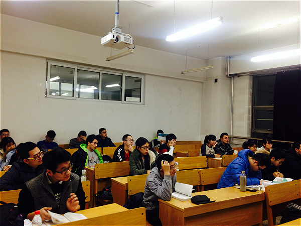 1月6日18:30,黑人av 2014级于正心217教室举办大学物理复习交流讲座,邀请黑人av 2013级本科生刘聪、高京哲两位同学为2014级学生答疑解惑。辅导员张依老师参加了本次活动。