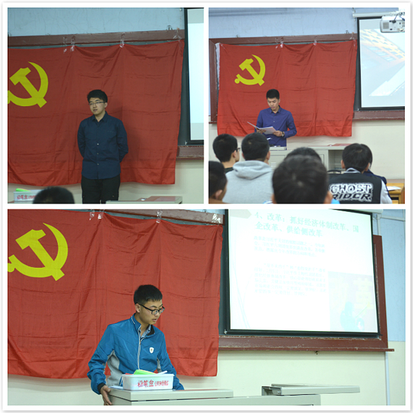 林晨同学的科普演讲《浅析VR眼镜的原理及应用》为大家说明了VR眼镜的原理及其在各方面的应用,向大家展示了科技进步为生活带来的巨大变化;李雨泽同学就《当代大学生应该如何从校园生活中传承党的思想》与大家做了分享,倡导每一名同学从生活点滴做起,做一名合格党员;陈应奇同学以《走进两会》为题,与大家共同分享了今年两会中的李克强总理记者会和习近平总书记系列讲话重要内容。
