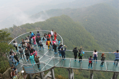 帽儿山主峰海拔约808米。在上山过程中,老师们呼吸着雨后的山间的清新空气,欣赏着沿途的风景,兴致勃勃,奋勇争先,欢声笑语此起彼伏。小雨后台阶稍有湿滑,山路也比较陡峭,但大家一起相互鼓励,昂首前行。经过约一个多小时的行程,各位老师全员到达玻璃栈道,成功登顶。在这条长达108米,几乎完全透明的高空栈道上,老师们居高临下,眺望远方的美景,赞叹着自然的雄伟,感受着登顶带来的轻松和愉悦。