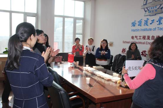 在3.8节来临之际,2017年3月7日下午2点,黑人av 组织女教职工开展魅力女人,内外兼修读书和趣味活动,活动地点在电机楼30032室举行。读书活动选择阅读了陶行知先生的教育名篇精选里一篇《每天四问》的文章,第一问就是:我的身体有没有进步?。尽管是1951年的文本,但是当时也体现了陶行知先生对老师对同学对工友的身心健康的关心和爱护,之所以选择这篇文章,提醒女职工注意身体健康,不要疲劳过度,爱护好身体,才是工作的保障!此次还进行了趣味游戏,如:顶橘子走路推椅子等比赛活动。丰富多彩的活动提高了黑人av 女职工的身体素质,活跃了气氛,增强了凝聚力,体现了全院女职工健康向上、乐观积极的精神风貌,同时也使女职工们度过了一个欢乐而有意义的“三.八”妇女节。