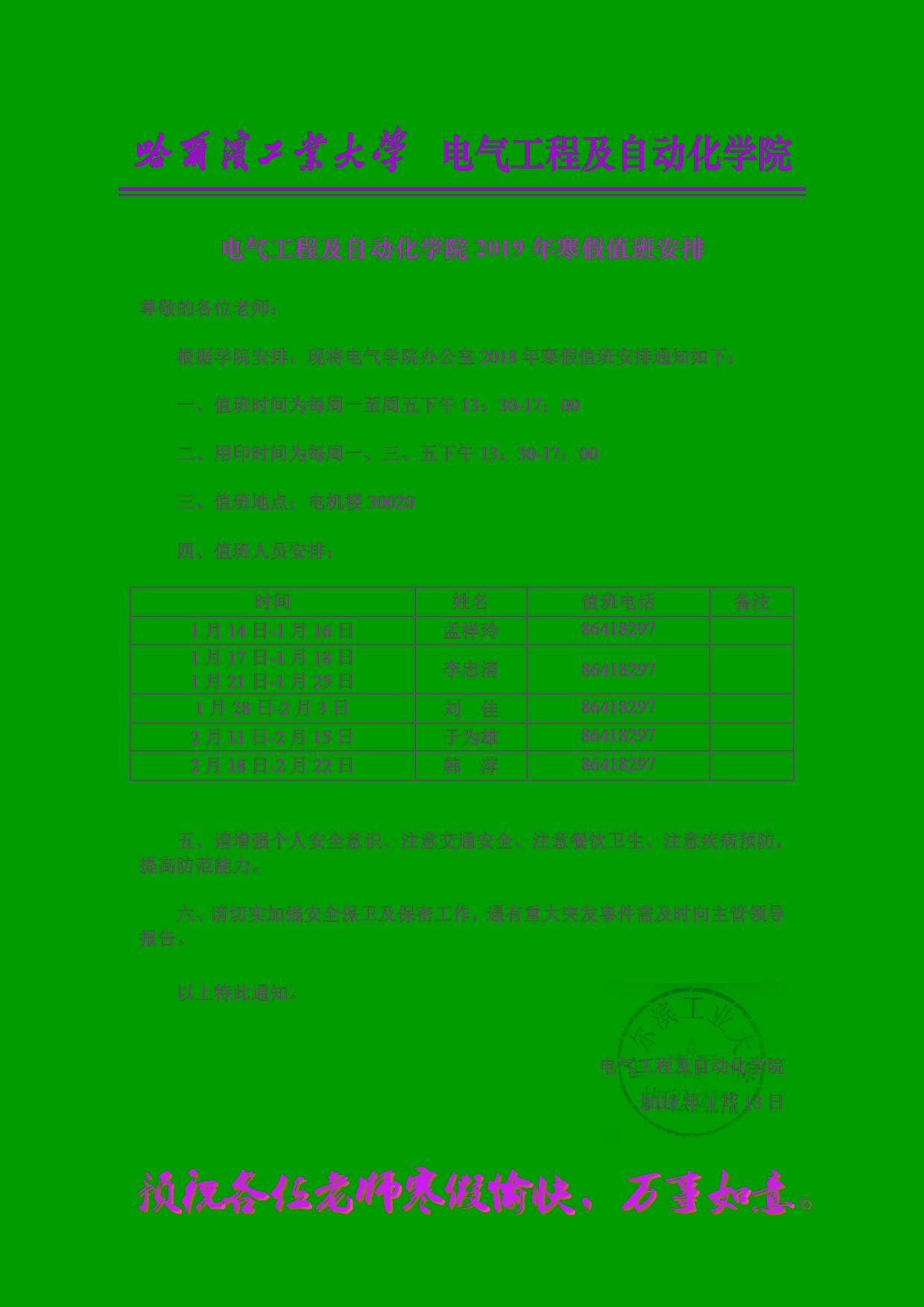 黑人av 2019年寒假值班安排