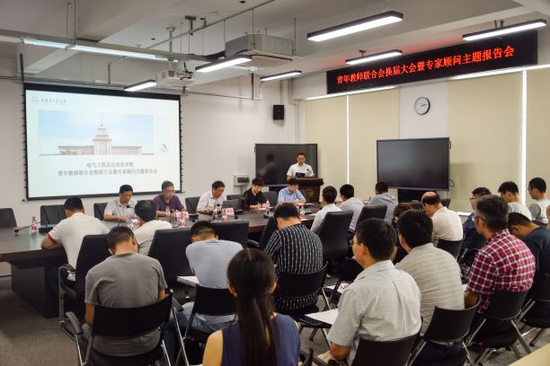 第二部分是青年教师联合会专家顾问主题报告会,由新一届会长王高林主持,首先副校长徐殿国做关于“青年教师如何做好职业生涯规划”的主题报告,分析了职业生涯的规划路径、电气工程的一些前沿研究领域等内容,并结合自身经历讲解了一些如何快速成长的方法和对青年教师的一些建议,全场老师获益匪浅。最后是与会人员交流环节,副校长徐殿国针对青年教师的一些问题做了耐心解答。