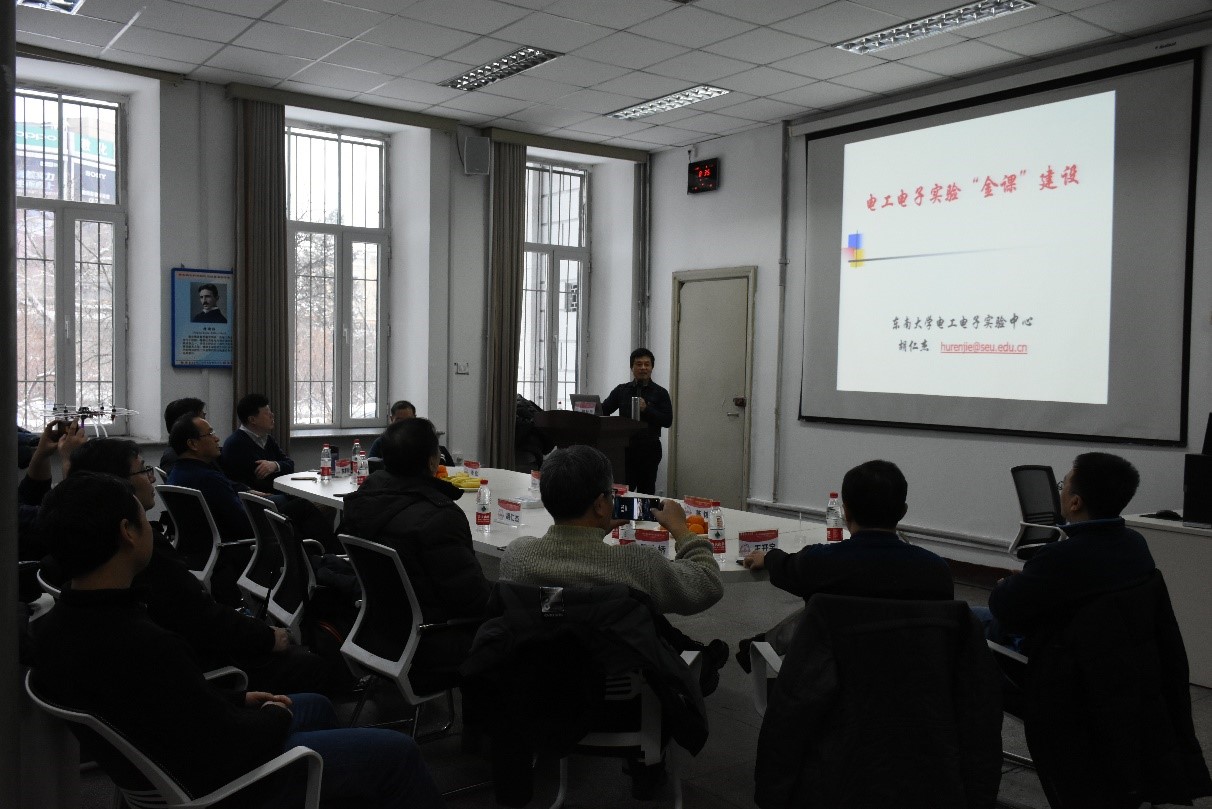 为推进实验教学一流课程建设,提升课程高阶性、突出课程创新性和增加课程挑战度,打好课程质量提升攻坚战,进一步推进现代信息技术与实验教学项目深度融合,推进实验教学改革,提升黑人av 实验教学水平,支撑学校“双一流”建设,服务一流本科人才培养;同时为推进黑人av 全国大学生电子设计竞赛工作,提高参赛学生的创新精神与实践能力,更好的备战2020年大学生电子设计竞赛,2020年1月8日,我校黑人av 成功举办了实验教学“金课”建设暨大学生电子设计竞赛案例解析研讨会。国家级实验教学示范中心联席会电子学科组组长、教学名师、东南大学胡仁杰教授与原国家级实验教学示范中心联席会电子学科组组长、2019年大学生电子设计竞赛命题专家、北京理工大学韩力教授受邀进行了主题特邀报告。
