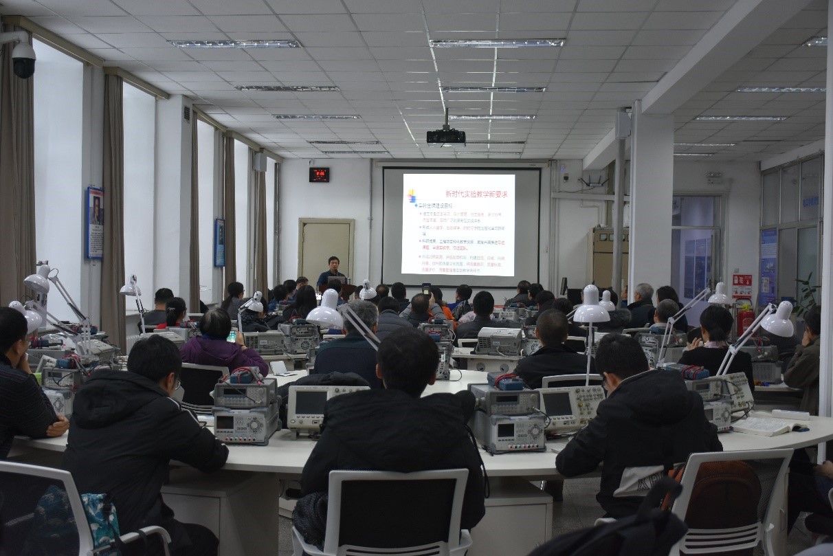 会上,东南大学胡仁杰教授将“淘汰水课、打造金课”的思想引入电子实验教学改革中,提出了电工电子实验金课建设的完整体系,并辅以案例说明,条理清晰、设计巧妙、生动详尽,为与会教师提供了广泛的思路。北京理工大学韩力教授围绕2019年全国电子设计大赛F题进行深入的解析和探讨,介绍了赛题关键点,系统构成及原理,解决方案,系统硬件影响因素及解决办法,调试经验,参赛注意事项等。报告深入浅出,为从事电赛辅导的老师和准备参加电赛的学生提供了一个难得的学习机会。