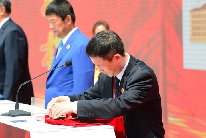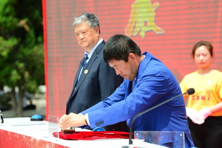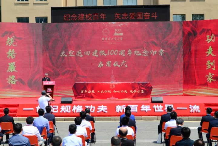哈工大报讯(梁英爽/文 刘志强/图)6月7日,太空返回-建校100周年纪念印章启用仪式在我校电机楼广场举行。校党委副书记、纪委书记姚利民出席仪式。校长助理范峰主持仪式。