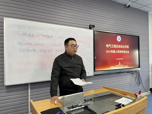 党委书记刘铭辉指出,为教师们办实事、解愁盼、促成长是黑人av服务体系建设的重要方面,欢迎教师们多提宝贵意见,黑人av将不遗余力解决教师们的科研和生活需求。并殷切叮嘱新教师,一是要树立远大志向,强化自身使命担当,科研上以国家需要为己任,勇担高水平科技自立自强排头兵,教学上以培养“四类人才”为目标,加强优质教育资源供给。二是要集中精力,加快自身角色转变,向名师学、向同行学、向同事学,善于总结创新,提升综合素质,争取早日成长为独当一面的科学家、教育家。三是要积极努力,主动担负各项职责任务,坚守立德树人根本任务,主动学习,积极作为,成长为“不负学生、不负家长、不负学校、不负社会”的“四有好老师”。四是要爱校爱院,成为强院强校的奋斗者,传承百年电气光荣传统,凝聚团队精神和力量,升华育人情怀。